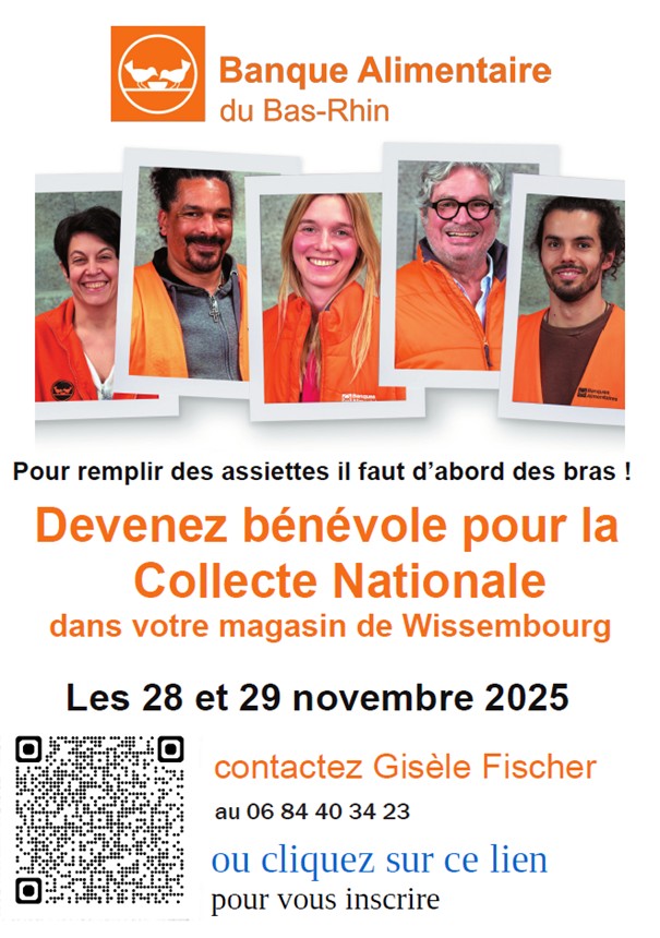 Devenez bénévole pour la collecte alimentaire dans votre magasin de Wissembourg le mardi 28 et mercredi 29 novembre 2025