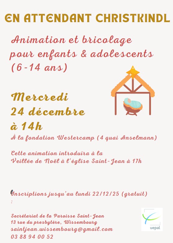 Cette animation introduira à la Veillée de Noël à l'église Saint-Jean à 17h.